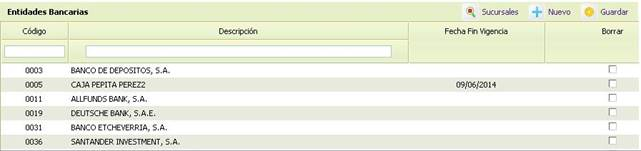 - [Código] Código de la entidad bancaria. Debe ser de cuatro caracteres. Obligatorio.