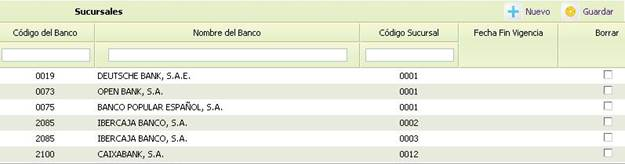 - [Código del Banco] Código de la entidad bancaria. La lista de valores que se muestra pertenece a los códigos de Entidades Bancarias creadas previamente. Obligatorio
