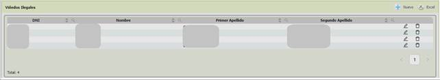La pantalla dispone de funcionalidad Excel para exportar la información de la tabla al PC del usuario.