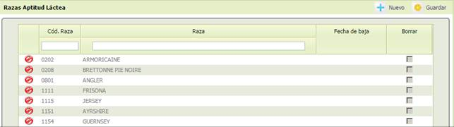 - [Cód. Raza] Código de Raza con aptitud láctea. Obligatorio.