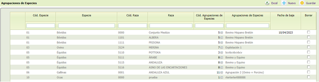 - [Cód. Agrupaciones de especies] Código de la agrupación de especies