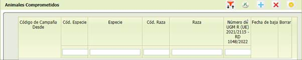 -Filtrar campaña vigente: por medio del botón se mostrará únicamente los animales comprometidos que se consideran vigentes para esa campaña.