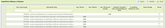 - [Superficie máxima (ha)] Superficie máxima para una línea concreta.