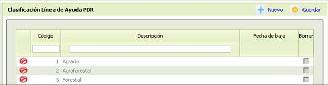- [Borrar] Casilla de verificación que permite realizar el borrado físico.