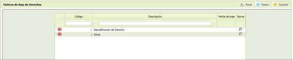 - [Borrar] Casilla de verificación que permite realizar el borrado físico