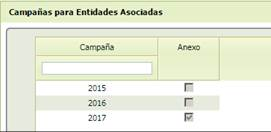 Es un catálogo sólo de consulta, y muestra las campañas activas según el Anexo III, de cara a la Declaración Responsable de la figura del Agricultor Activo de las Entidades Asociadas.