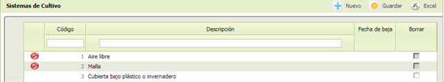 -[Código] Código del sistema de cultivo. Obligatorio.