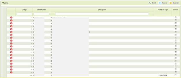 - [Borrar] Casilla de verificación que permite realizar el borrado físico. Únicamente se permite en los nuevos registros introducidos.