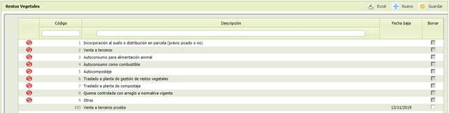 - [Borrar] Casilla de verificación que permite realizar el borrado físico. Únicamente se permite en los nuevos registros introducidos.