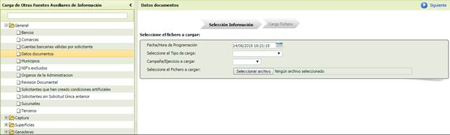 Desde esta opción podremos realizar cargas desde otras fuentes auxiliares de información (OFAI).