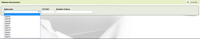 - [Aplicación] Desplegable que muestra una lista de valores para seleccionar el módulo de SGA desde dónde se subió el documento a borrar.