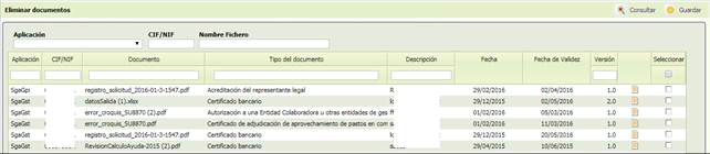 Una vez seleccionado el documento o documentos asociados al CIF/NIF que se quieren eliminar, se pulsará el botón para ejecutar el borrado.