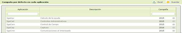 En esta pantalla se parametriza la campaña activa que se mostrará por defecto al entrar a las aplicaciones de SGA.
