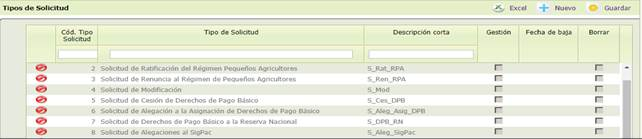 - [Cód. Tipo Solicitud] Código del tipo de solicitud. Obligatorio.
