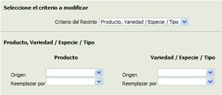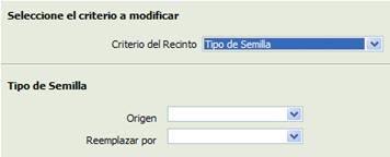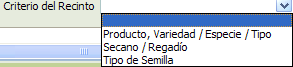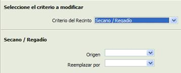 En el campo [Criterio del Recinto] tenemos en una lista de valores desplegable con la relación de aquellos campos que definen un recinto para los cuales podemos hacer el cambio masivo. Los valores que lo componen son: