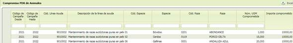 - [Núm. UGM Comprometidas] Número de UGM's comprometidas según nivel de agrupación especie y raza.