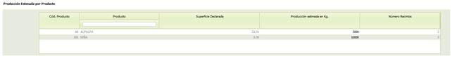 - [Producción estimada en kg] Producción estimada por producto. Campo obligatorio.