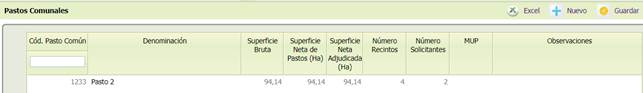 - [Superficie Bruta] Superficie formada por la suma de la superficie bruta de los recintos que componen el pasto comunal