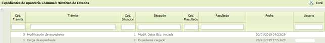 Desde esta opción se visualiza el histórico de cambios de estado del expediente.