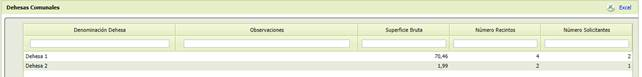 En este apartado podemos consultar los datos de las Dehesas comunales declaradas. La pantalla muestra el siguiente aspecto: