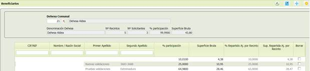 2. Botón (sólo en perfiles Modificación) se podrá dar de alta un nuevo beneficiario para esa dehesa comunal.