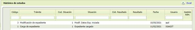 Desde esta opción se visualiza el histórico de cambios de estado del expediente.