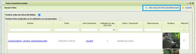 b) Dar de alta una nueva fotografía georreferenciada de forma manual.