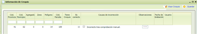- [Tiene Croquis] Indica si se ha presentado croquis para la parcela de concentración. No modificable.