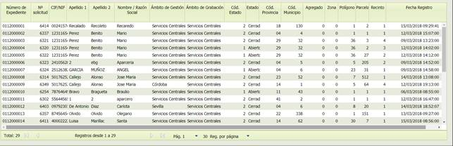 “Consultar”, que se encuentra a la derecha del título del formulario. Como resultado de esta consulta, se muestra el listado de expedientes de SgaGst, así como una serie de datos mínimos de los mismos.