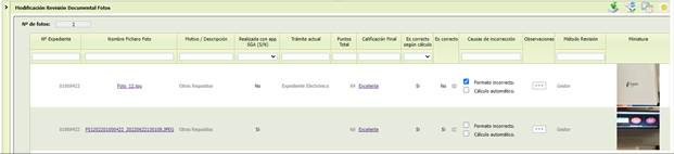 Este formulario permite realizar la revisión documental de las fotos incorporadas en el expediente de forma individual.