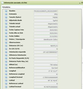 , se accede a la pantalla Información Asociada a la Foto, en la que pueden consultarse los metadatos de la fotografía georreferenciada: