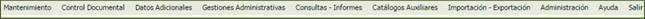 Se mostrarán las distintas opciones de menú disponibles para el usuario en relación al perfil o perfiles que tenga asociados.