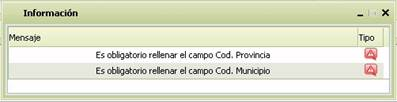 En el caso de habernos dejado sin cumplimentar alguno de los campos, o si se ha cumplimentado de forma incorrecta, aparecerá un mensaje de error (simbolizado con los iconitos rojos) similar al siguiente: