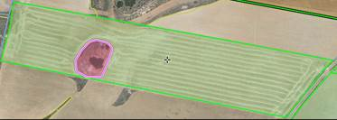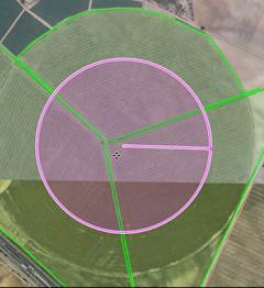· Crea una LDG circular (C): permite crear una LDG nueva con una superficie circular digitalizando su centro y radio. La LDG se creará sobre el recinto SIGPAC donde se marque el 2º punto. En el panel de mensajes se mostrará dinámicamente la superficie definida. Si la LDG activa no tiene geometría, se asignará la obtenida con la herramienta.