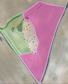 · Redondear sup. a 2 decimales (R): modifica la geometría de las LDGs seleccionadas de forma que su superficie se ajuste a 2 decimales, como múltiplo de 100 m2. Las LDG deben tener espacio libre dentro del recinto SIGPAC en alguno de sus lados para poder realizar el ajuste.