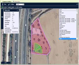 · Borrar geometría de LDGs (B): sirve para borrar la geometría de la LDG que se indique. Al borrar la geometría, en el panel de información de selección se muestra la superficie de la LDG con el texto N/D en rojo.