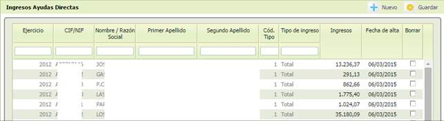 Los datos de los ingresos recibidos por el solicitante de Ayudas Directas PAC son necesarios para el Proceso de Cálculo del Agricultor Activo, por lo que el Sistema SGA deberá recogerlos en esta tabla.
