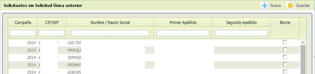 Los Organismos Pagadores deberán proporcionar este listado de solicitantes presentes en 2015 pero sin Solicitud Única en años anteriores, para que el Proceso de Cálculo de Agricultor Activo les aplique la condición de Superficie Elegible y el cálculo del Importe. Presenta el siguiente aspecto: