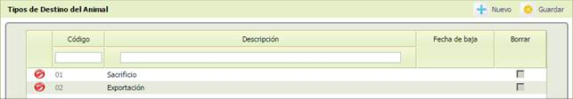 - [Borrar] Casilla de verificación que permite realizar el borrado físico.