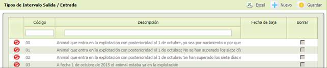 - [Borrar] Casilla de verificación que permite realizar el borrado físico.