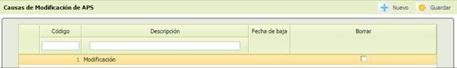 -[Borrar] Casilla de verificación que permite realizar el borrado físico.