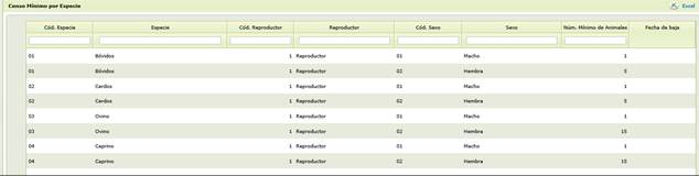 - [Núm. Mínimo de Animales] Valor del número mínimo de animales.