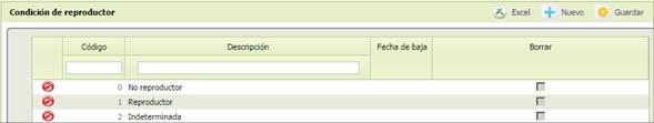 - [Borrar] Casilla de verificación que permite realizar el borrado físico.