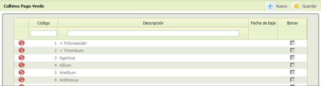 - [Descripción] Descripción del cultivo, asociado a código. Obligatorio.
