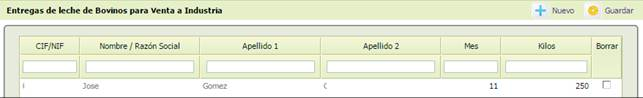 -[Campaña] Año de la campaña de entregas de leche. Si se da un alta por pantalla, por defecto se cumplimenta con la actual, aunque es posible modificar el dato.