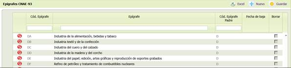 - [Borrar] Casilla que permite marcar los registros que al guardar serán borrados.