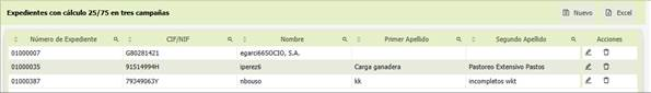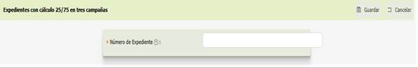 Catálogo Auxiliar donde se podrán indicar aquellos expedientes en los que tener en cuenta las tres campañas anteriores para el cálculo 25/75, cuando el parámetro de configuración general “Ejercicios a considerar en cálculo del 25/75” indique que sea sólo con el ejercicio anterior.