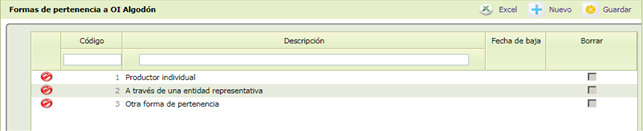 -[Borrar] Casilla de verificación que permite realizar el borrado físico.