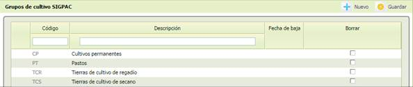 -[Código] Código del grupo de cultivo. Obligatorio.