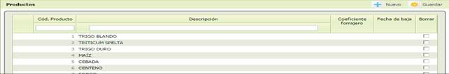 -[Cód. Producto] Código del producto agrícola. Obligatorio.